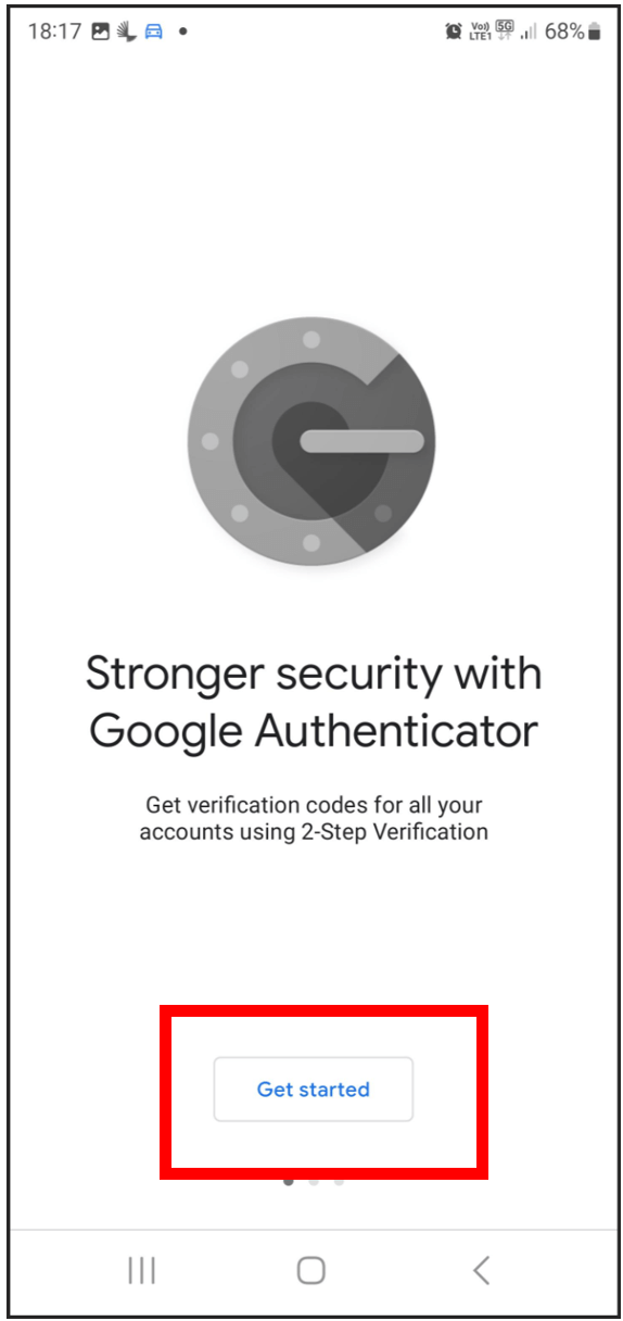 Open Google Authenticator and click "Get Started".